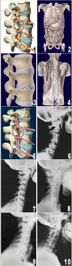 To the right you will see a representation of one type of subluxation. A subluxation, as defined by the Association of Chiropractic Colleges is: "A subluxation is a complex of functional and/or structural and/or pathological articular changes that compromise neural integrity and may influence organ system function and general health." When a subluxation occurs it causes nerve interference in some portion of the body affected by those nerves. The subluxation causes changes to the structure as well as the nerves. These changes get progressively worse as time is allowed to work on the subluxated area of the spine. These changes take the form of ongoing degeneration known as "subluxation degeneration". By understanding the type and amount of changes, it is possible to reasonably estimate the time subluxations have been present in a spine. Having this information is useful in understanding the time and effort needed for correction.